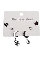 ARETE ACERO PLATEADO SET DE 3 PARES