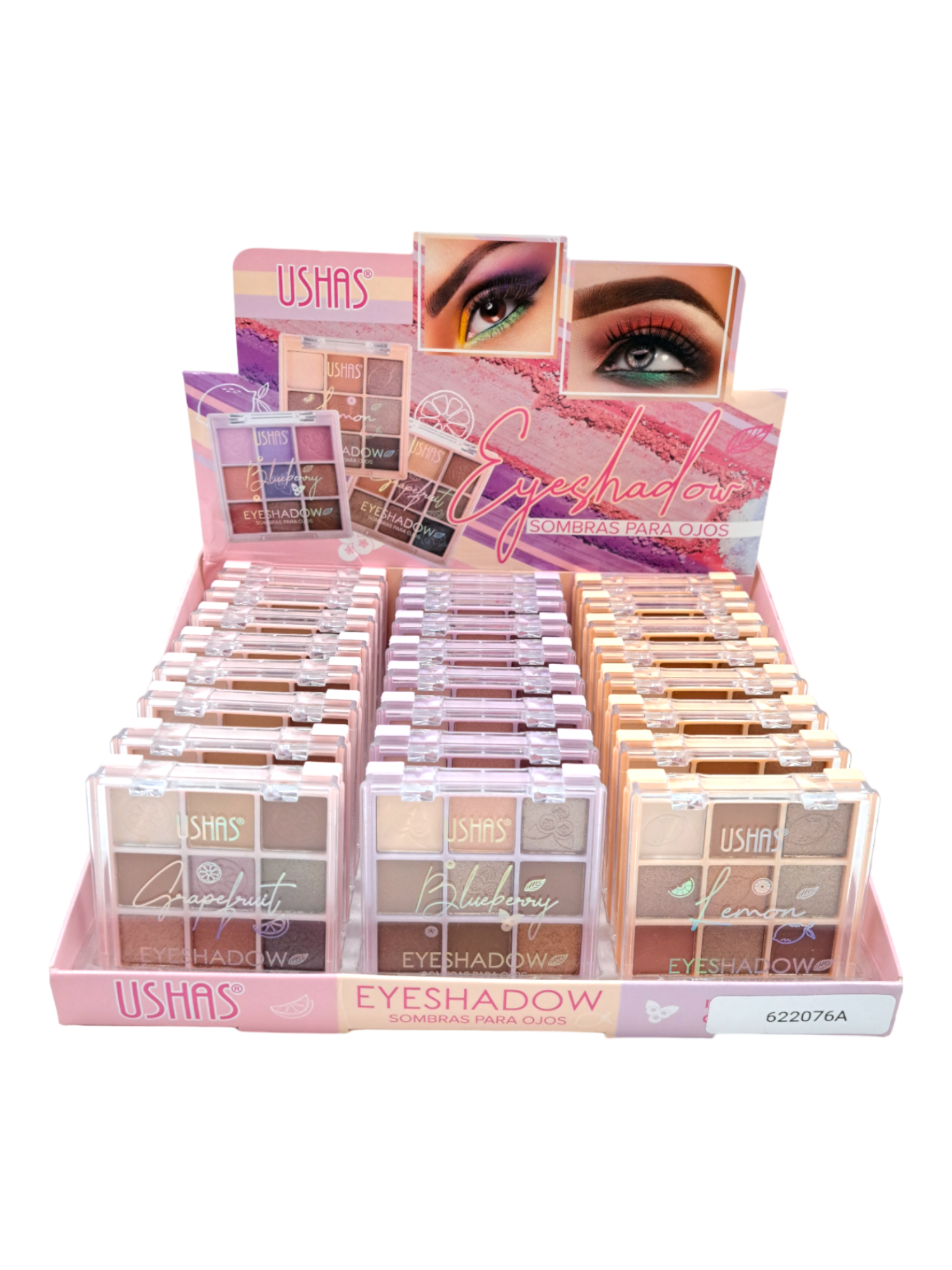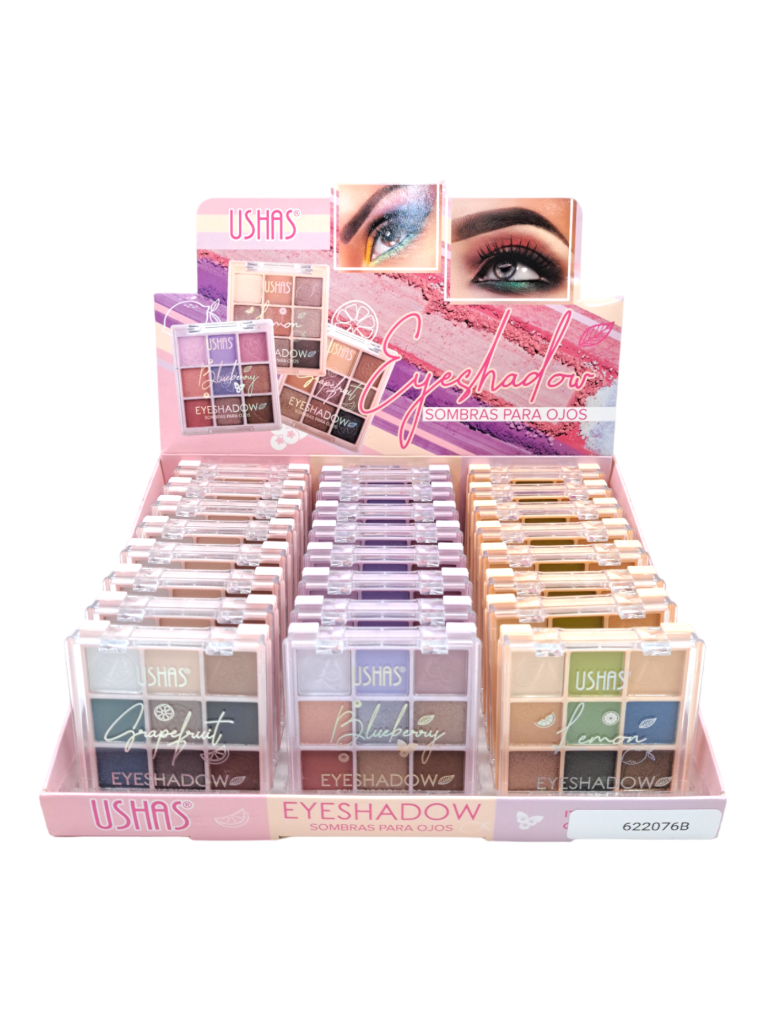 SOMBRA DE OJOS MINI 9 COLORES USHAS A - TONOS TIERRA B - TONOS VIVOS 24 PCS/CAJA